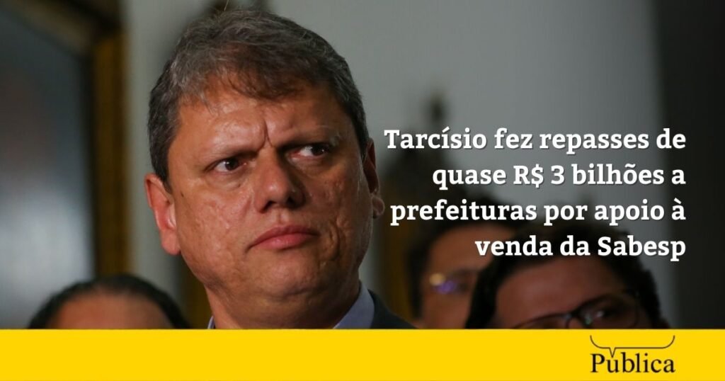 - O governo de São Paulo injetou quase R$ 3 bilhões em fundos municipais de saneamento, um mês após a venda da Sabesp. Especialistas apontam que repasses foram feitos para garantir apoio das prefeituras à privatização;